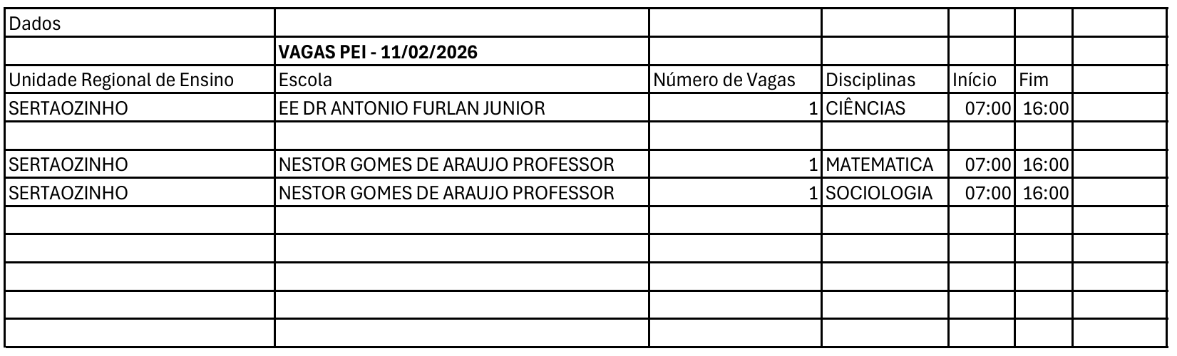 A Unidade Regional de Ensino de Sertãozinho, INFORMA as vagas para o Programa de Ensino Integra – PEI ano letivo 2026, de acordo com GESTÃO DE ENTREVISTAS, VALIDAÇÃO DO DIRETOR E CLASSIFICAÇÃO PEI