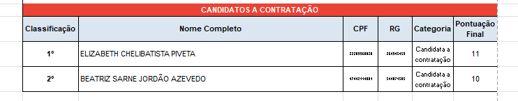Os candidatos relacionados abaixo, interessados nessa modalidade deverão comparecer ao local e horário supracitados munidos do seu documento pessoal original com foto e Modelo CGRH ou Ofício com as aulas que já tenham sido atribuídas nas unidades escolares (solicitar ao Diretor da Escola que tenha aulas atribuídas).