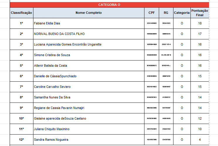 Os candidatos relacionados abaixo, interessados nessa modalidade deverão comparecer ao local e horário supracitados munidos do seu documento pessoal original com foto e Modelo CGRH ou Ofício com as aulas que já tenham sido atribuídas nas unidades escolares (solicitar ao Diretor da Escola que tenha aulas atribuídas).