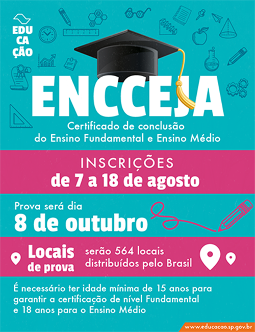 Já estão abertas as inscrições para o exame de certificação do Ensino Fundamental e Médio. As provas serão realizadas no dia 22 de outubro.